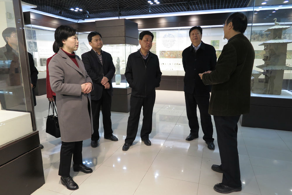 本站訊 3月2日下午,開(kāi)封市副市長(zhǎng)馬璞同志到大觀博物館進(jìn)行參觀訪問(wèn),我校黨委書(shū)記張新梅、校長(zhǎng)宋志敏、藝術(shù)設(shè)計(jì)學(xué)院院長(zhǎng)魏躍進(jìn)等陪同參觀。