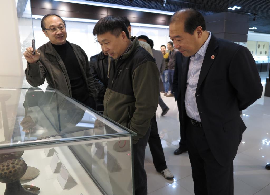 本站訊 2016年10月25日下午,河南省教育廳高校新生入學資格復查小組王文臣、王宏偉等領導一行來大觀博物館參觀,我校黨委副書記儲建新、工會主席成芳等領導陪同。