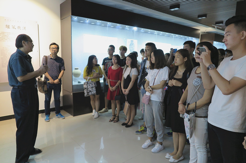 本站訊 近日,根據人才培養方案的課程安排,藝術設計學院2015級視覺傳播設計與制作專業,裝潢藝術設計2班的學生走進大觀博物館。由專業教師務海濤帶領,用“教學做”合一的授課形式,以館藏文物為素材,實地開展書籍裝幀與印刷課程的教學。