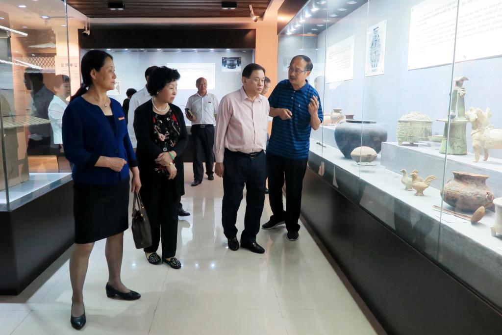 本站訊 5月31日下午,我校董事會董事長李金松博士、趙奎榮女士,世界客屬總商會執行副會長梁鋒先生,世界客屬總商會法律顧問蘇利民女士等一行到大觀藝術博物館考察指導工作。我校黨委書記陳燦、黨委副書記儲建新、工會主席成芳以及藝術設計學院院長魏躍進等陪同參觀。