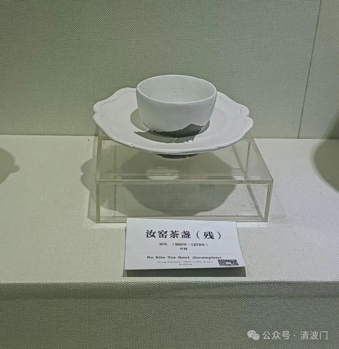 參加本次龍鱗南宋官窯研學(xué),家鄉(xiāng)河南汝窯故里的朋友,分享兩張圖片給大家。是河南開封大學(xué)大觀博物館的展品。一件是官窯梅瓶(殘),未具體說明是南宋官窯還是未被考古發(fā)現(xiàn)確證窯址的北宋官窯?另一件是汝窯茶盞(殘),從器型看,應(yīng)該是茶盞的座托(中空),而非茶盞。