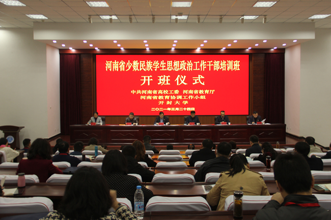 本站訊 為深入貫徹第三次中央新疆工作座談會精神,加強新時代的民族團結進步教育,鑄牢中華民族共同體意識,3月24日至26日,省委高校工委、省教育廳舉辦的河南省少數民族學生思想政治工作干部培訓班在我校舉行。省委高校工委專職委員何秀敏、開封市人民政府副市長劉震、我校黨委書記陳燦出席開班儀式。開封市委常委、統戰部部長邵華,常務副部長呂瑞林出席培訓班專題報告會。省委統戰部、省教育廳、省民宗委、鄭州市教育局、開封市教育局、南陽市教育局相關負責人,部分高校黨委相關部門負責人、教師、學生專職輔導員,共135人參加培訓。