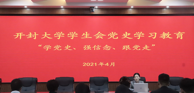 本站訊 4月22日下午,開封大學(xué)2021年春季學(xué)生會(huì)培訓(xùn)暨黨史學(xué)習(xí)教育活動(dòng)在行政樓四樓會(huì)議廳舉行。校學(xué)生會(huì)全體成員、各院部學(xué)生會(huì)主席團(tuán)成員及部門代表參加了活動(dòng)。