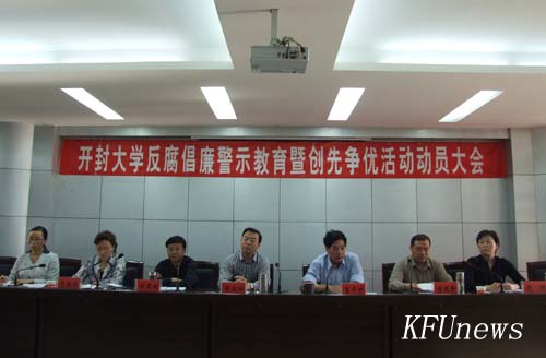 校黨委組織部部長秦雪峰在會上宣讀了《關于成立開封大學創先爭優活動領導小組的通知》和《中共開封大學委員會關于在全校基層黨組織和共產黨員中深入開展創先爭優活動的實施方案》。