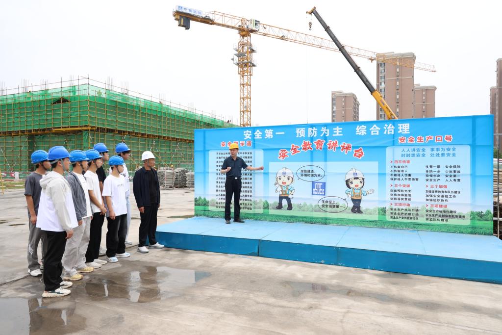 5月13日上午,王開嶺老師帶領 20 名學生,走進中建二局開封大學產教融合大樓工地。活動現場,王開嶺老師結合實際案例,向企業技術人員和工人系統講解了 “預鋪反粘” 防水技術的原理。本次培訓圍繞施工關鍵技術與質量控制要點展開系統教學,助力施工人員快速掌握該技術的核心。