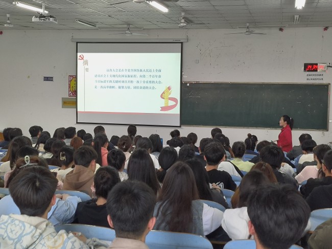 本站訊 為全面深入學(xué)習(xí)領(lǐng)會(huì)黨的二十大精神,4月10日下午,財(cái)政經(jīng)濟(jì)學(xué)院黨總支在15號(hào)樓202階梯教室開展了黨的二十大精神專題宣講活動(dòng)。學(xué)院全體黨員教師、學(xué)院分黨校第18期發(fā)展對(duì)象培訓(xùn)班學(xué)員和第67期積極分子培訓(xùn)班學(xué)員參加了宣講活動(dòng)。 活動(dòng)由學(xué)院教工支部書記崔蕓主持,市委二十大精神宣講團(tuán)成員、馬克思主義學(xué)院副教授蘇會(huì)君以《深入學(xué)習(xí)宣傳貫徹黨的二十大精神》為題展開宣講。