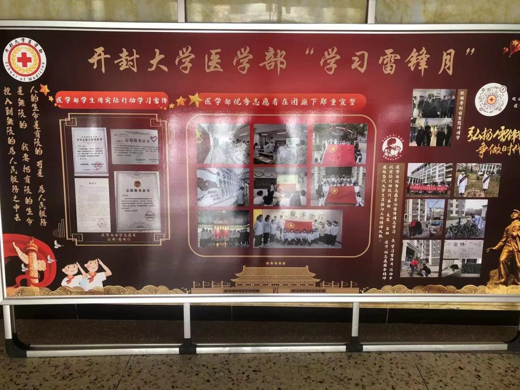 3月起,我部積極響應號召開展為期一個月的“學雷鋒”活動,并及時在醫學部16號樓一樓大廳集中展示我部“學雷鋒”活動的階段性豐碩成果。本次活動也為醫學部交展示創建精神文明成果提供平臺,是提升新一輪師生精神文明創建水平的重要載體。